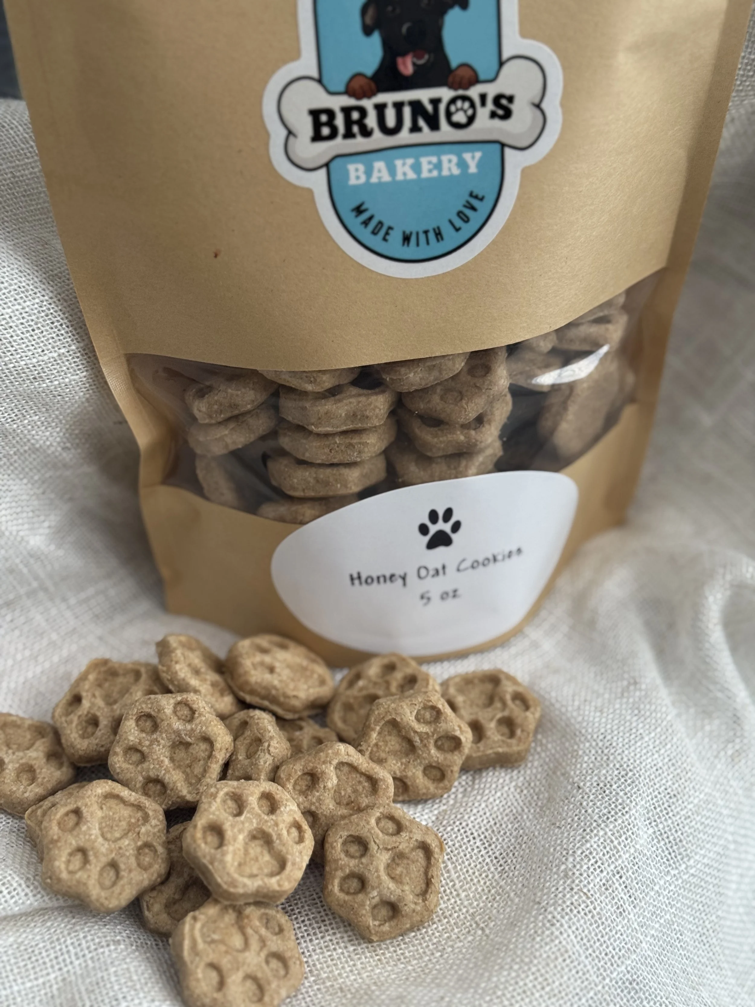 Join Bruno’s Treat Box Subscription! A monthly subscription of (4, 3, or 2) 5oz bags of yummy organic treats. Flavors may include Peanut Butter Blueberry Hearts, Peanut Butter Honey Bones, Peanut Butter Cinnamon Flowers and/or Honey Oat Cookies.